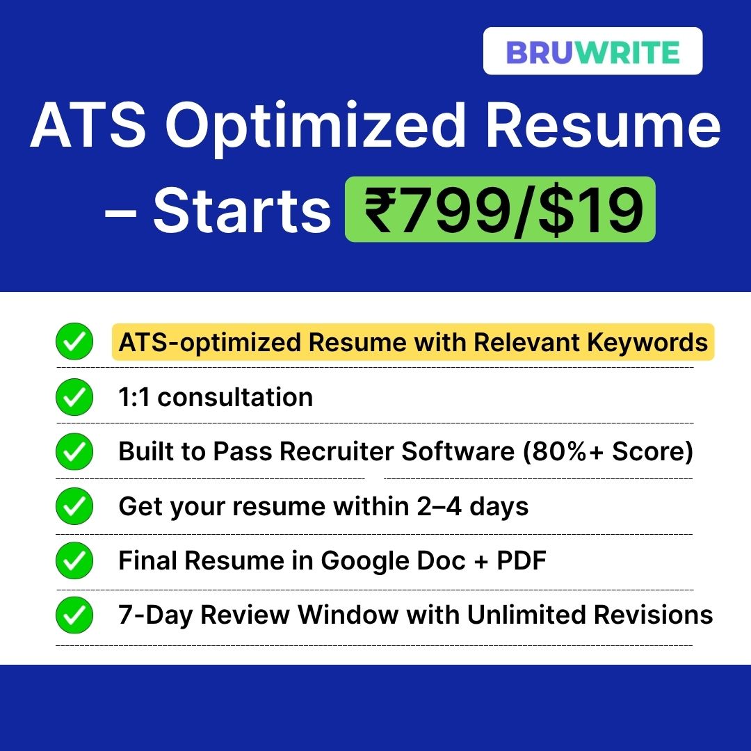 Share your old resume with us, or we’ll start fresh using your job description and job title. We’ll also schedule a call to understand your requirements in detail.