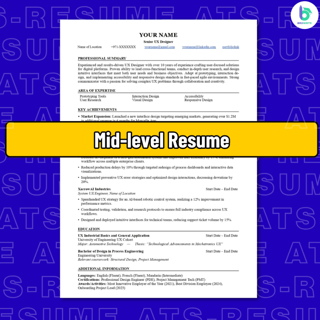 Career Advancement Focus: Emphasizes your accomplishments, leadership potential, and the impact you’ve made in past roles while aligning your profile for mid-level or managerial opportunities.