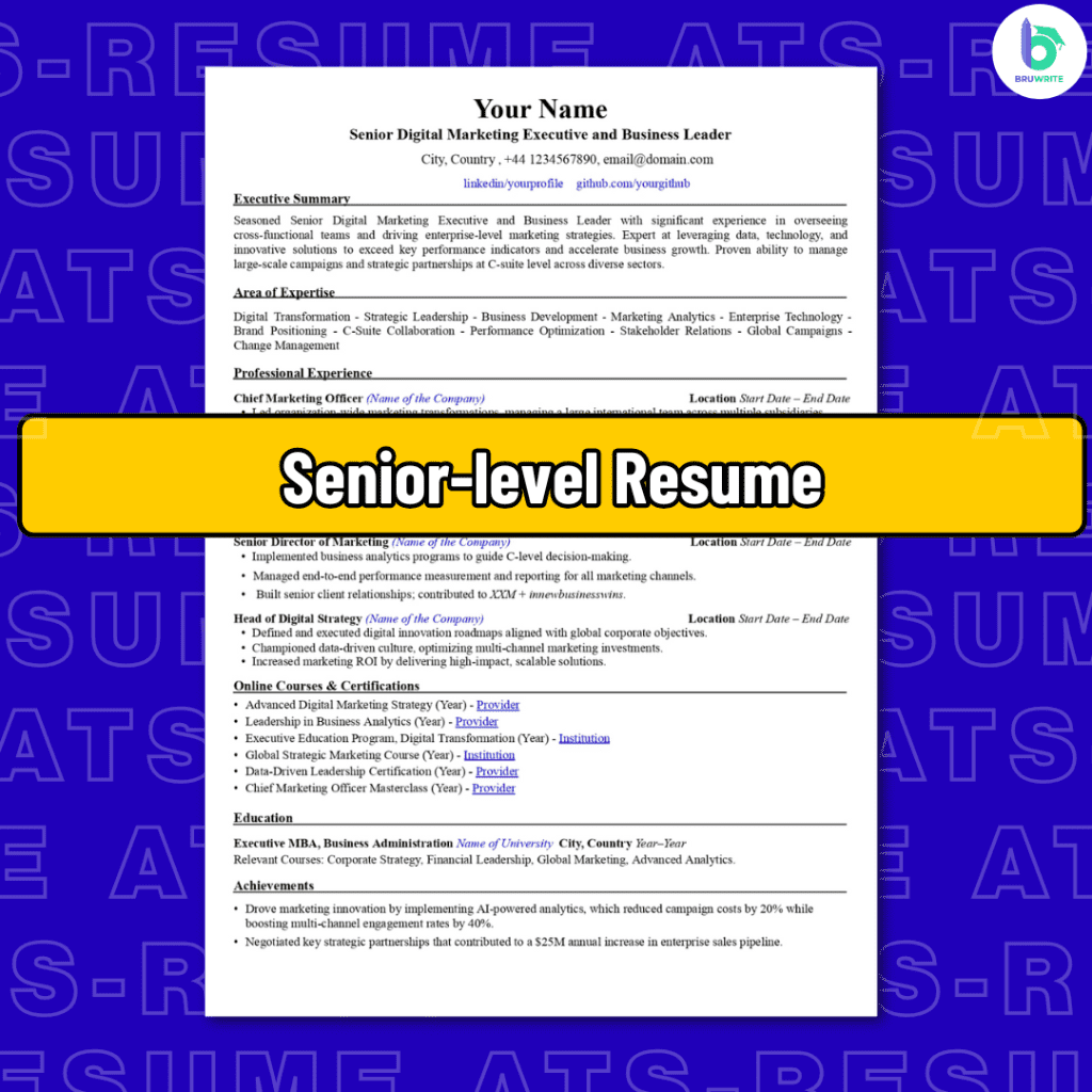💡 Perfect for 7+ years experience — managers, directors, or executives aiming for C-suite roles.